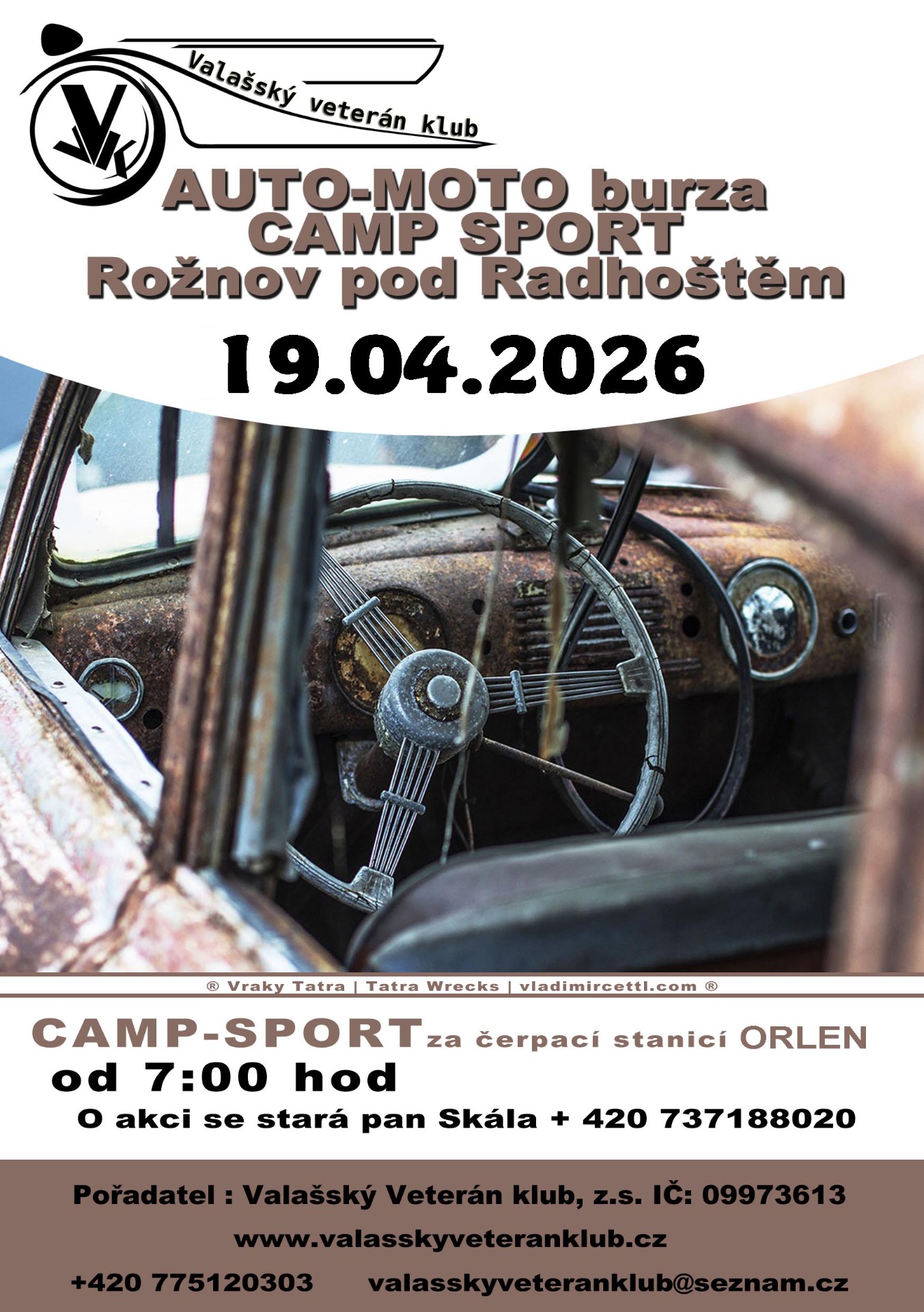 Zveme Vás na tradiční jarní burzu, která se bude konat v Camp Sport Rožnov pod Radhoštěm, za benzínovou stanicí Orlen. Vstup od 7:00. Akci má na starost pan Skála Ladislav, tel: 737188020